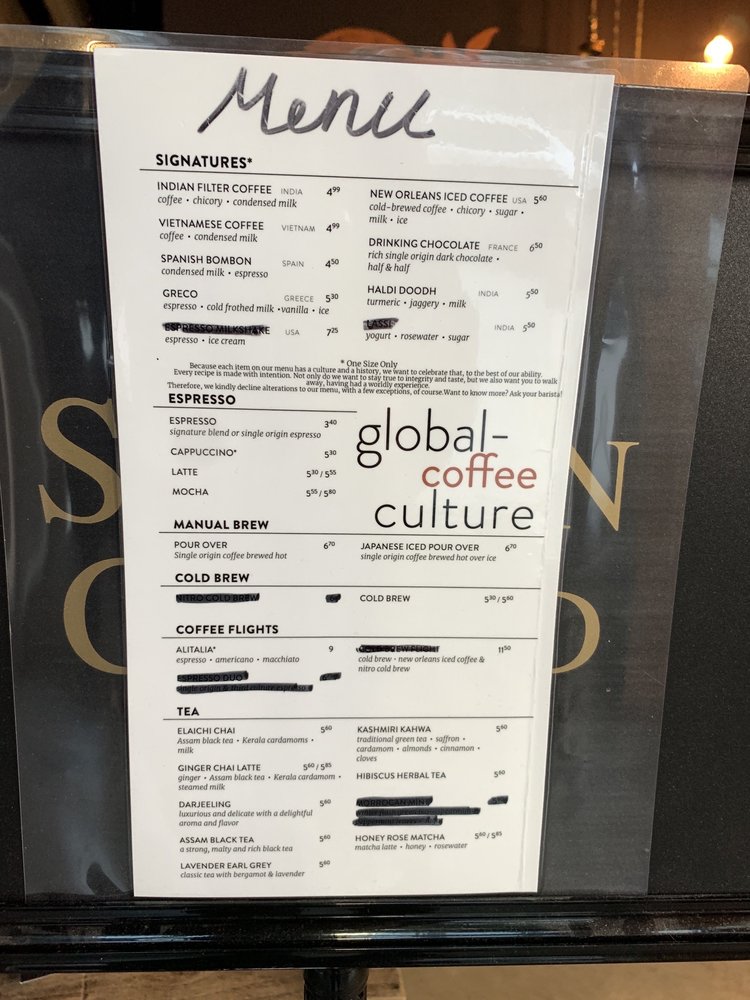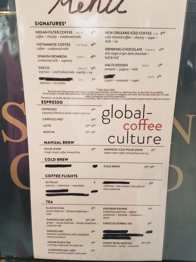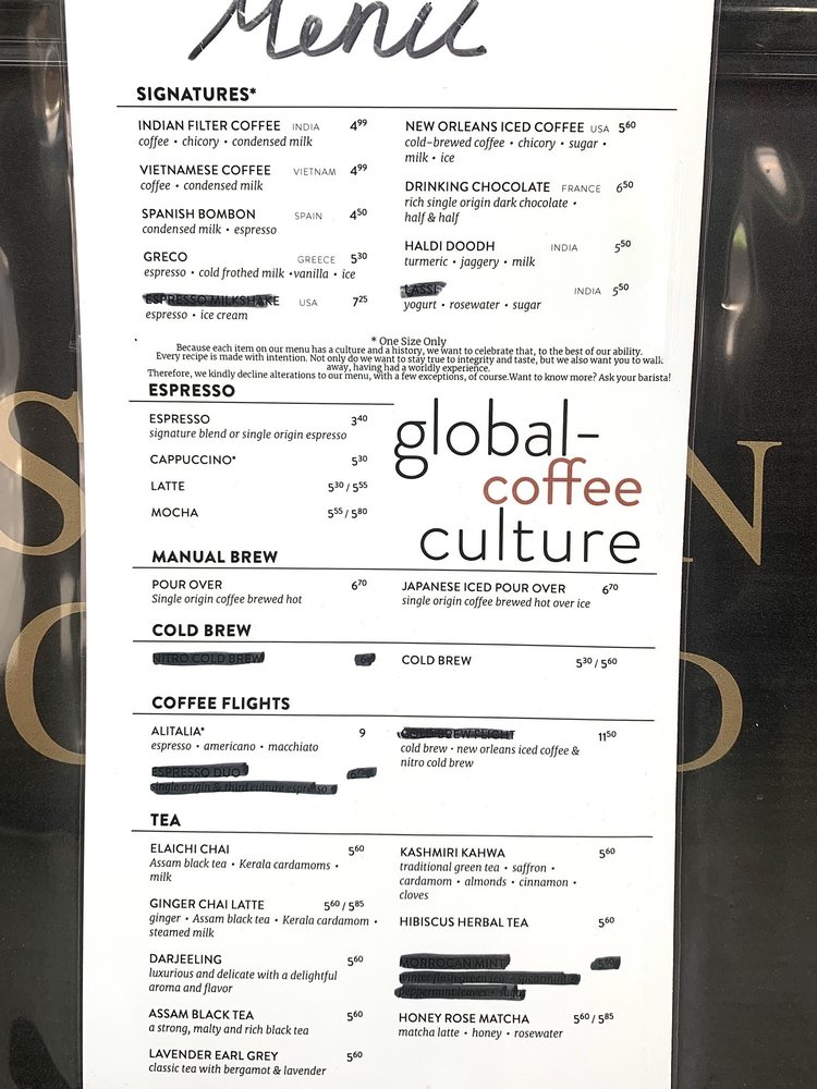 Third Culture Coffee Menu